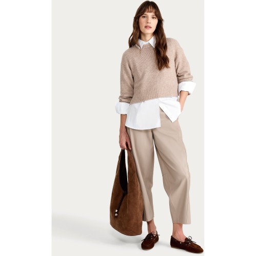 Knitted Crew Neck Cropped Jumper in Mink