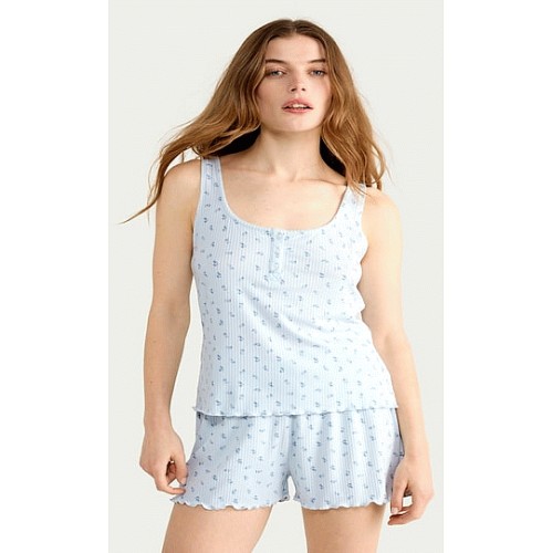 Ribbed Floral Print Pyjama Nightdress in Multi White