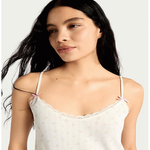 Pointelle Floral Print Short Sleeved Pyjama Top in White