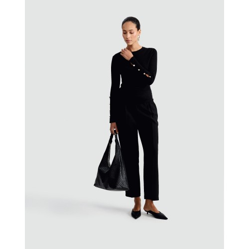 Ribbed Frill Detail Long Sleeved Top with Cotton in Cream