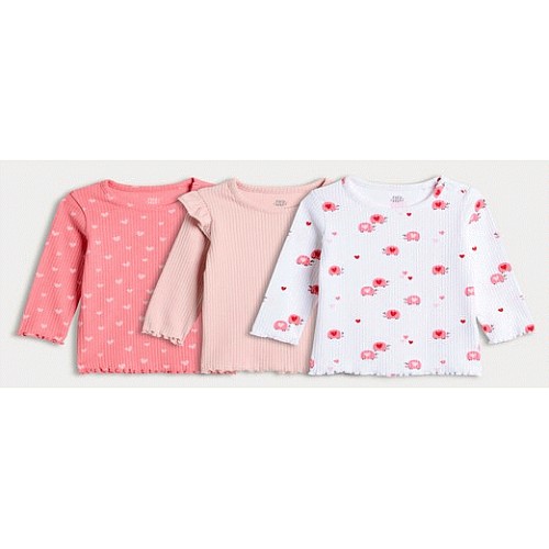 3-Pack Cotton Rich Ribbed Long Sleeved Tops in Cream