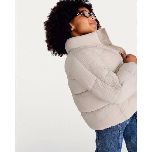 F&F Girls High Neck Double Layer Padded Jacket in Cream