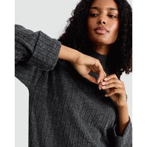 Ribbed High Neck Long Sleeved Tunic in Grey