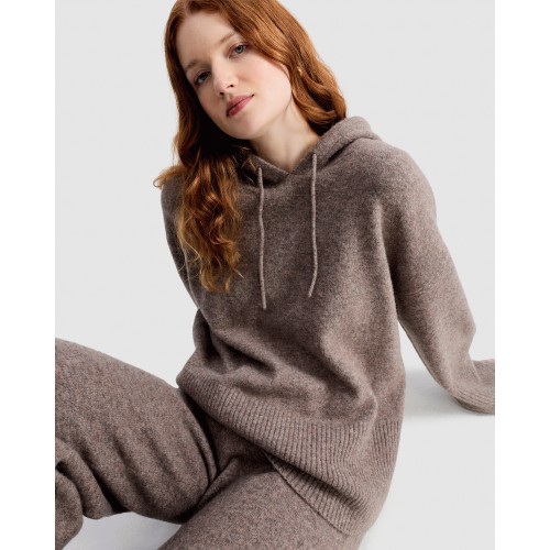 Knitted Drawstring Hooded Jumper with Wool in Mink