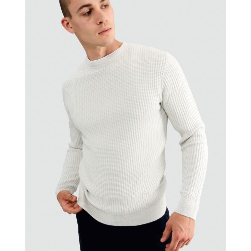 Waffle Knit Crew Neck Jumper with Wool in Cream