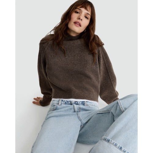 Ribbed Knitted High Neck Jumper in Mink