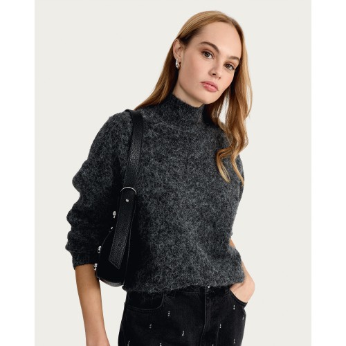 Knitted Sequin Bow High Neck Jumper with Wool in Grey