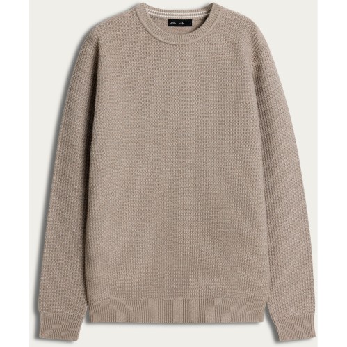 Knitted Ribbed Crew Neck Jumper in Neutral