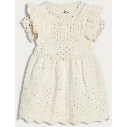 2-Piece Pure Cotton Knitted Dress and Bodysuit in Cream