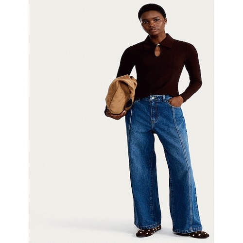 Ribbed Keyhole Long Sleeved Top in Chocolate