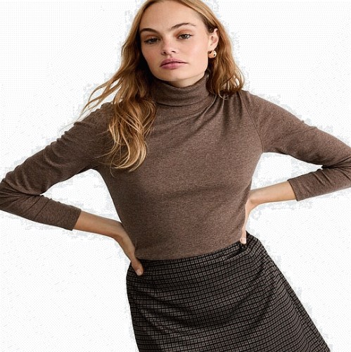 Ribbed Roll Neck Long Sleeved Top in Mink