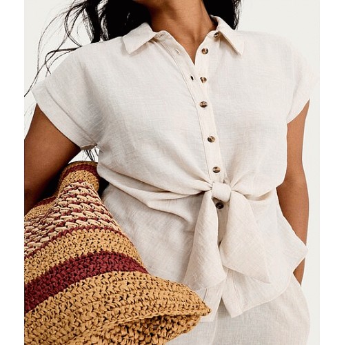 Knot Front Button Up Co-ord Blouse in Neutral
