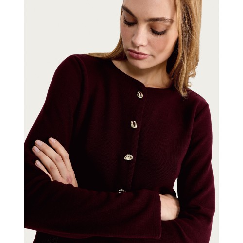 Ribbed Button Up Co-Ord Cardigan in Burgundy