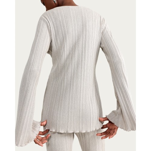 Ribbed Metallic Button Up Co-ord Top in Neutral