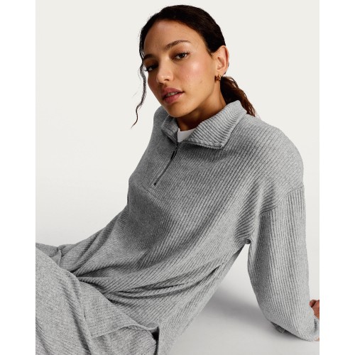 Ribbed Snit Half Zip Pyjama Set in Grey