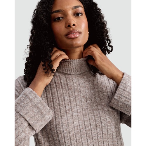 Ribbed Knit Roll Neck Jumper with Wool in Mink