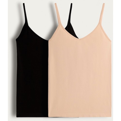 Ribbed Seamfree V Neck Button Front Top in Black