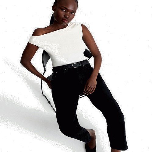 Polyamide Asymmetric Neck Sleeveless Top in Cream