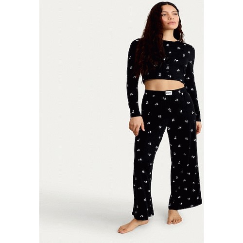 Ribbed Sweet Dreams Top and Bottoms Pyjama Set in Multi Black