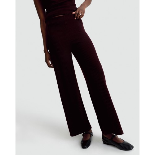 Ribbed Wide Leg Co-ord Trousers in Burgundy