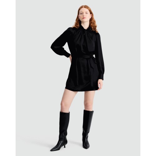 Satin Tie Neck Mini Dress in Black