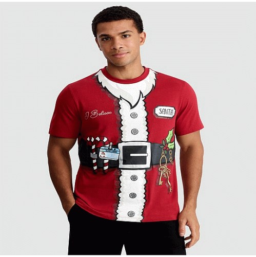 Pure Cotton Santa I Believe Slogan T-Shirt in Red