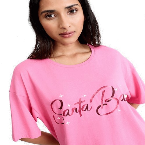 Pure Cotton Santa Baby Foil Slogan Nightdress in Pink