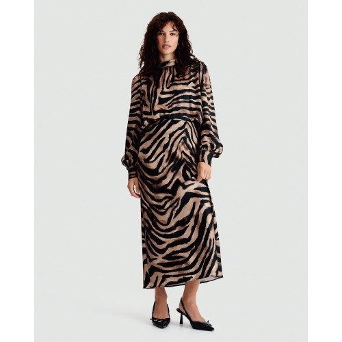 Satin Zebra Print Midi Skirt in Multi Brown