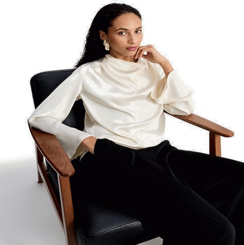 Satin Cowl Neck Long Sleeved Blouse in Black