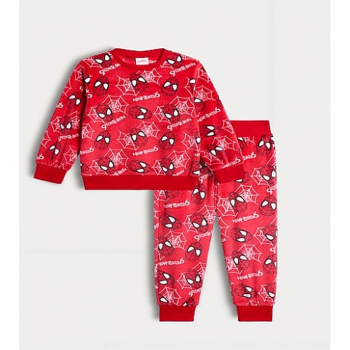 Marvel Spider-Man Print Fleece Pyjama Set in Red
