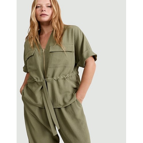 F&F Satin Button Front Tie Waist Blouse in Cream
