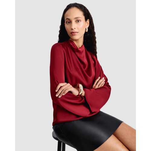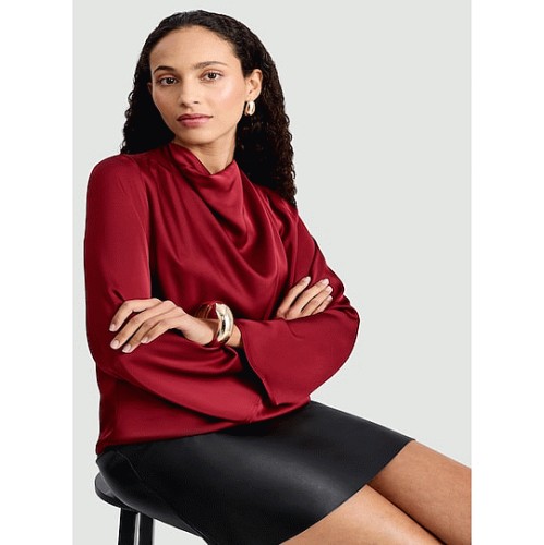 Satin Cowl Neck Sleeveless Blouse in Burgundy
