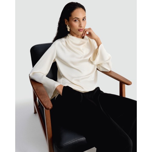 Satin Cowl Neck Blouse in Ivory
