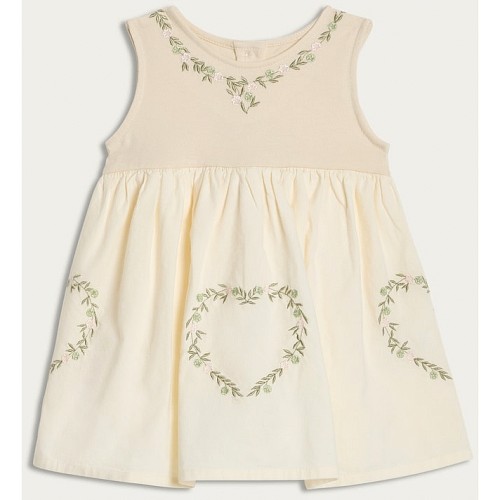 Pure Cotton Embroidered Sleeveless Dress in Cream