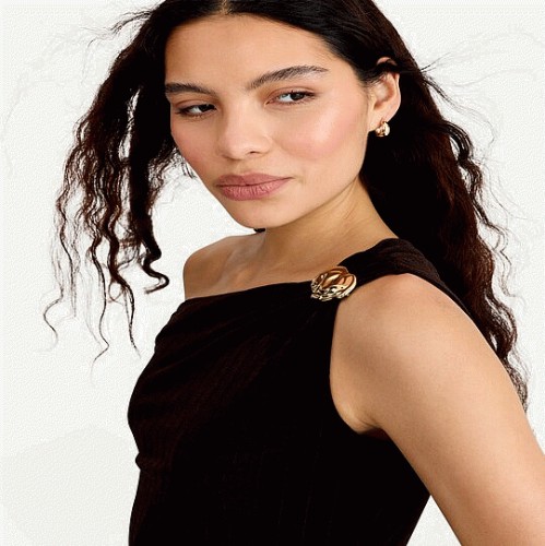Satin Cowl Neck Metal Accent Midi Dress in Chocolate