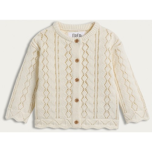 Pure Cotton Pointelle Button Up Cardigan in Cream