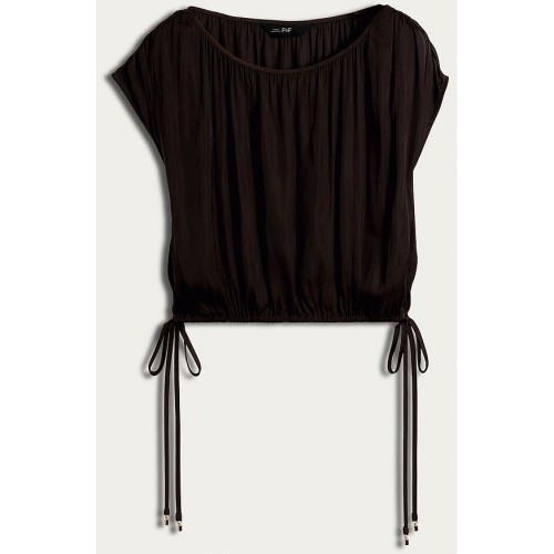 Satin Drawstring Hem Sleeveless Co-ord Top in Chocolate