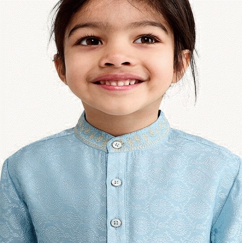 F&F Boys Jacquard Embroidered Longline Kurta in Teal