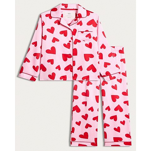 Girls Heart Print Pyjama Set in Pink
