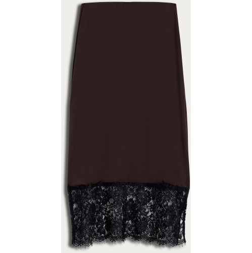 Satin Lace Trim Co-ord Midi Skirt in Chocolate