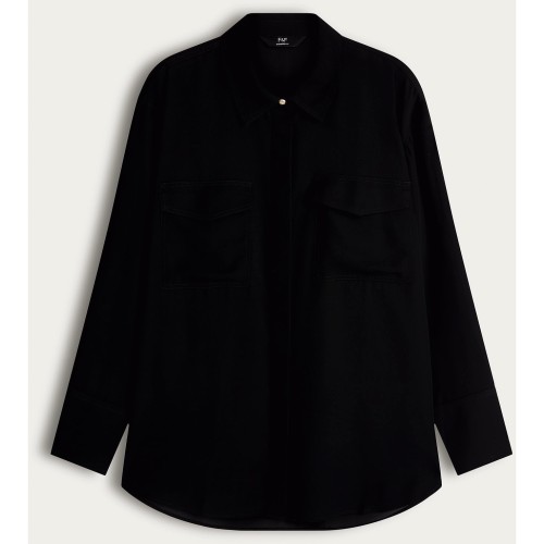 Satin Long Sleeved Pocket Front Shirt in Black