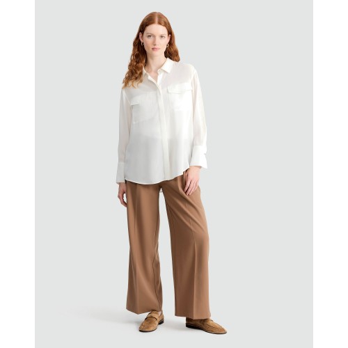 Satin Long Sleeved Pocket Front Shirt in Cream