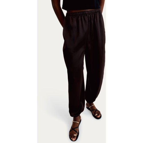 Satin Wide Leg Cuffed Trousers in Chocolate