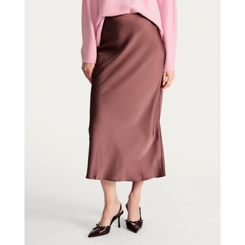 Satin Midi Slip Skirt in Chocolate