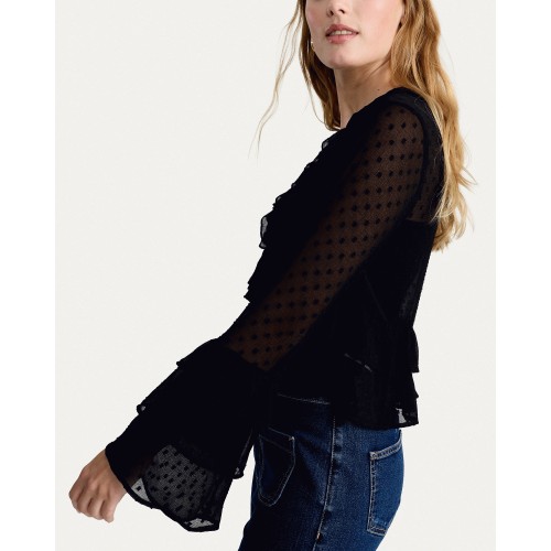 Metallic Polka Dot Long Sleeved Co-ord Blouse in Black