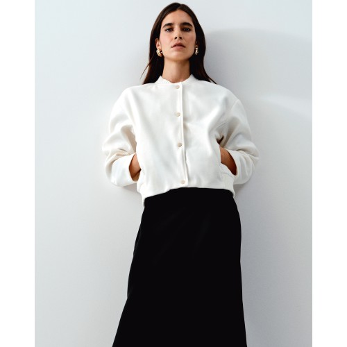 Satin Midi Slip Skirt in Cream