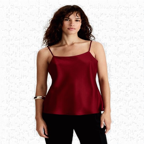 Satin Lace Trim Asymmetric Hem Co-ord Cami Top in Black