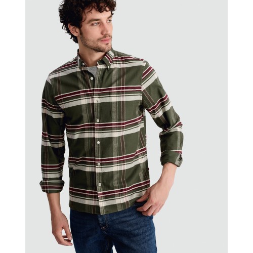 Pure Cotton Check Print Button Up Shirt in Khaki