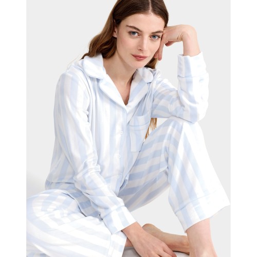 Fleece Stripe Print Shirt and Bottoms Pyjama Set in Blue