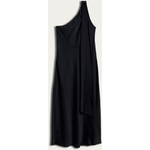 Satin Scarf Neck Midi Dress in Black